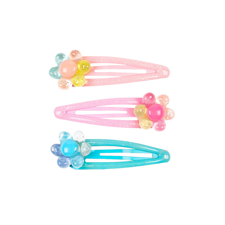 Komplet 3 spinek do włosów Daniek holenderskiej marki Souza! Na każdej z nich znajduje się kolorowy kwiatek. Połyskujące metalowe zaciski na klik (jasnoróżowy, różowy i niebieski) sprawiają, że ozdoby stabilnie trzymają się włosów. Idealne zarówno na przyjęcia, jak i na co dzień. Sprawdzą się także jako stylowy prezent.